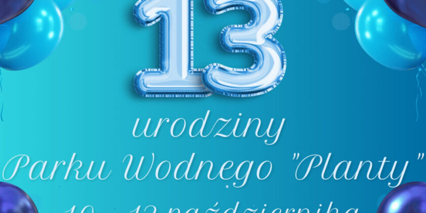 Serdecznie zapraszamy na wspólne świętowanie 12. urodzin Parku Wodnego Planty w dniach 11 – 13 października 2024 r. Czekają na Was: